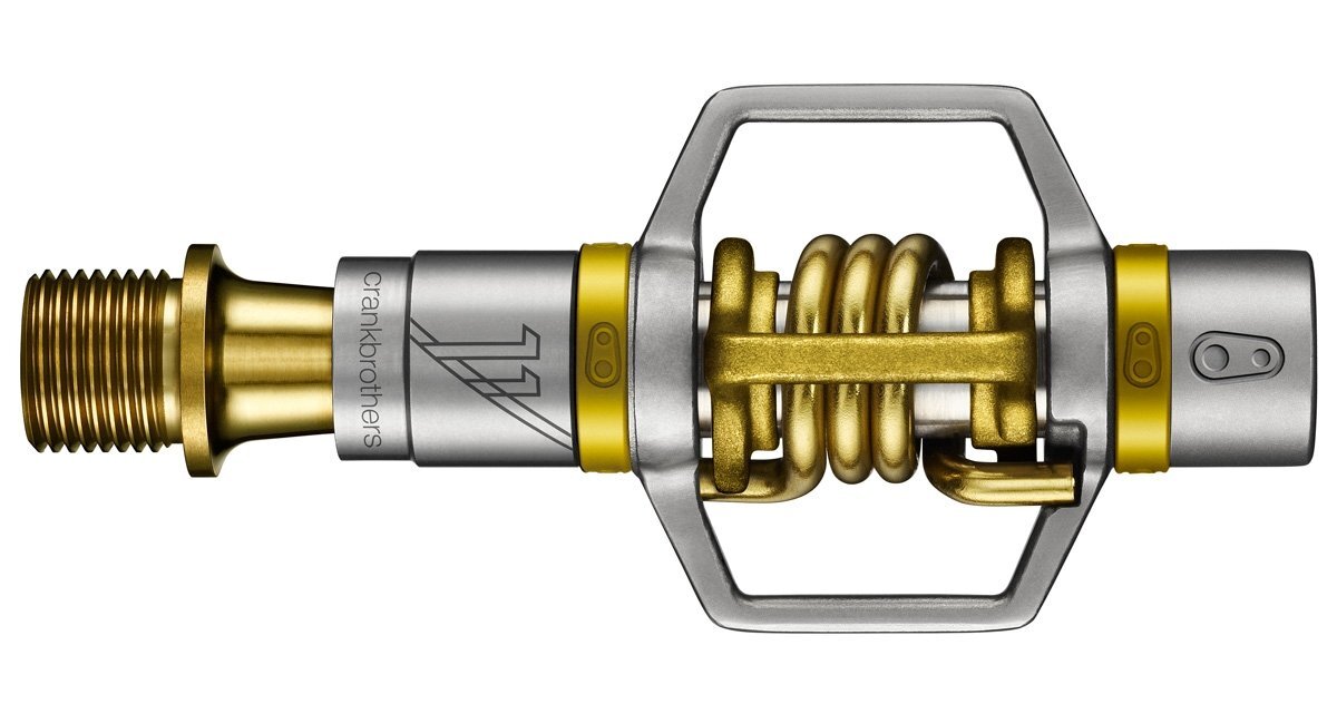 Crank Brother’s lightest pedal, 4 main parts made of titanium Weighing in at only 174g per pair, the 11 Ti features all titanium construction with Eggbeater’s four-sided entry. The choice of mountain bike pros worldwide, these pedals shed mud like water off a duck. Super easy to service, making them an viable investment for seasons to come.