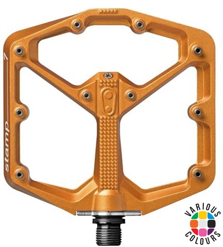The Stamp 7 from Crank Brothers is a size specific pro-level concave platform pedal, providing optimal shoe/pedal interface. Delivering an optimal surface area with a minimal profile of just 11mm-13mm thin, the Stamp has a concave platform for a secure foothold, and 10 adjustable pins preside for grip. Premium bearings and a seal system finish off this pedal with class, providing you with an MTB flat pedal that cannot be overlooked as a standard for high quality