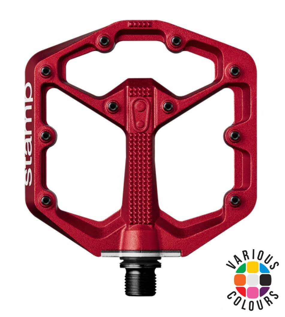 The Stamp 7 from Crank Brothers is a size specific pro-level concave platform pedal, providing optimal shoe/pedal interface. Delivering an optimal surface area with a minimal profile of just 11mm-13mm thin, the Stamp has a concave platform for a secure foothold, and 10 adjustable pins preside for grip. Premium bearings and a seal system finish off this pedal with class, providing you with an MTB flat pedal that cannot be overlooked as a standard for high quality.