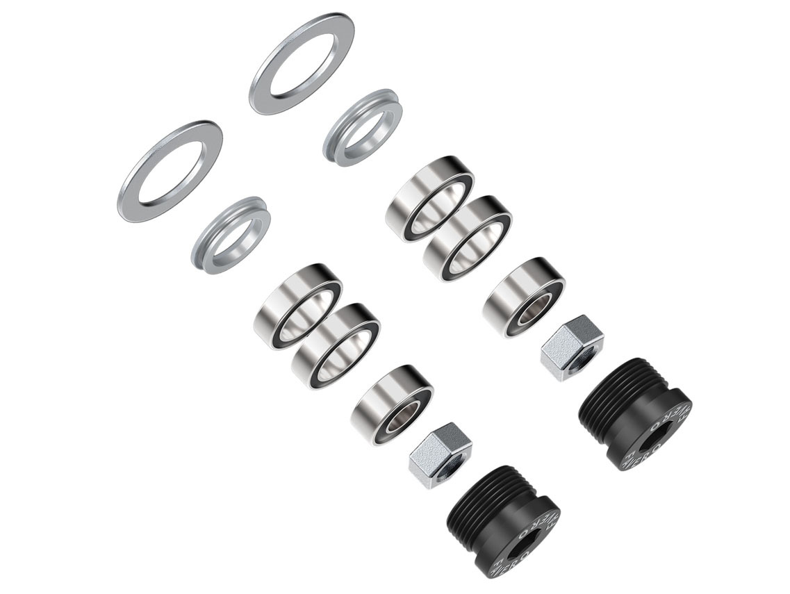 Set of bearings, M6 nuts, oil-seal, end-cap and washers for the Assioma pedal bodies: left and right.
