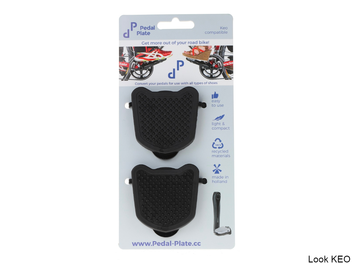 Make more use of your road bike! / No more sliding of your clipless pedals. With the Pedal Plates you can easily turn your Look Keo clipless pedals into flats for use with all types of shoes.