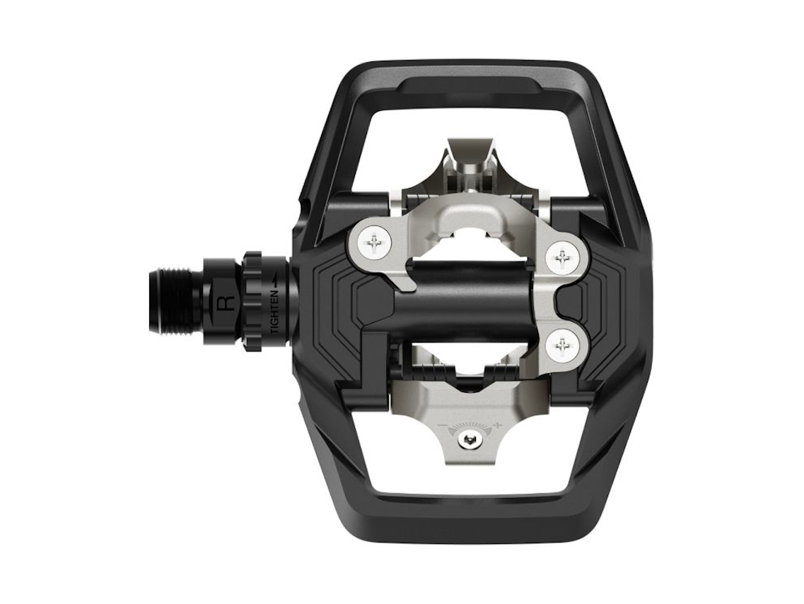 Wide, dual-sided platform improves pedal-to-shoe stability and power transfer
