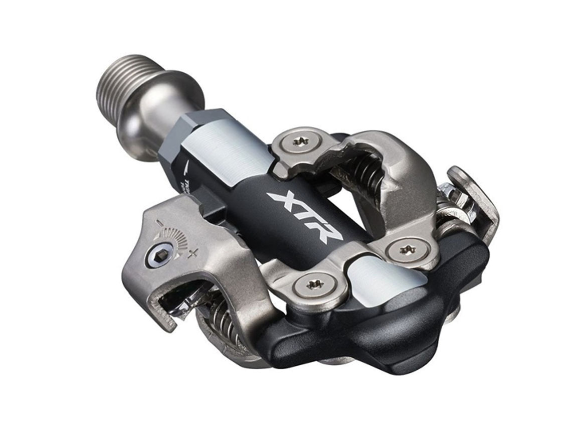 The wider edge-to-edge contact surface of the Shimano XTR PD-M9100 provides a stable interface between pedal and shoe and ensures efficient power transfer. The cylindrical contact surface of the XTR 9100 Cross Country Racing pedal prevents mud better ensuring a safe entry and exit. The PD-M9100 is available with two different axle lengths (52 or 55 mm, crank surface – pedal centre).