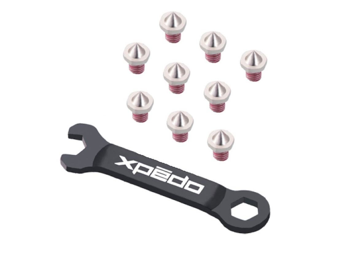 These durable steel pins deliver grippy goodness on any shoes. Custom pin wrench makes swapping a breeze.